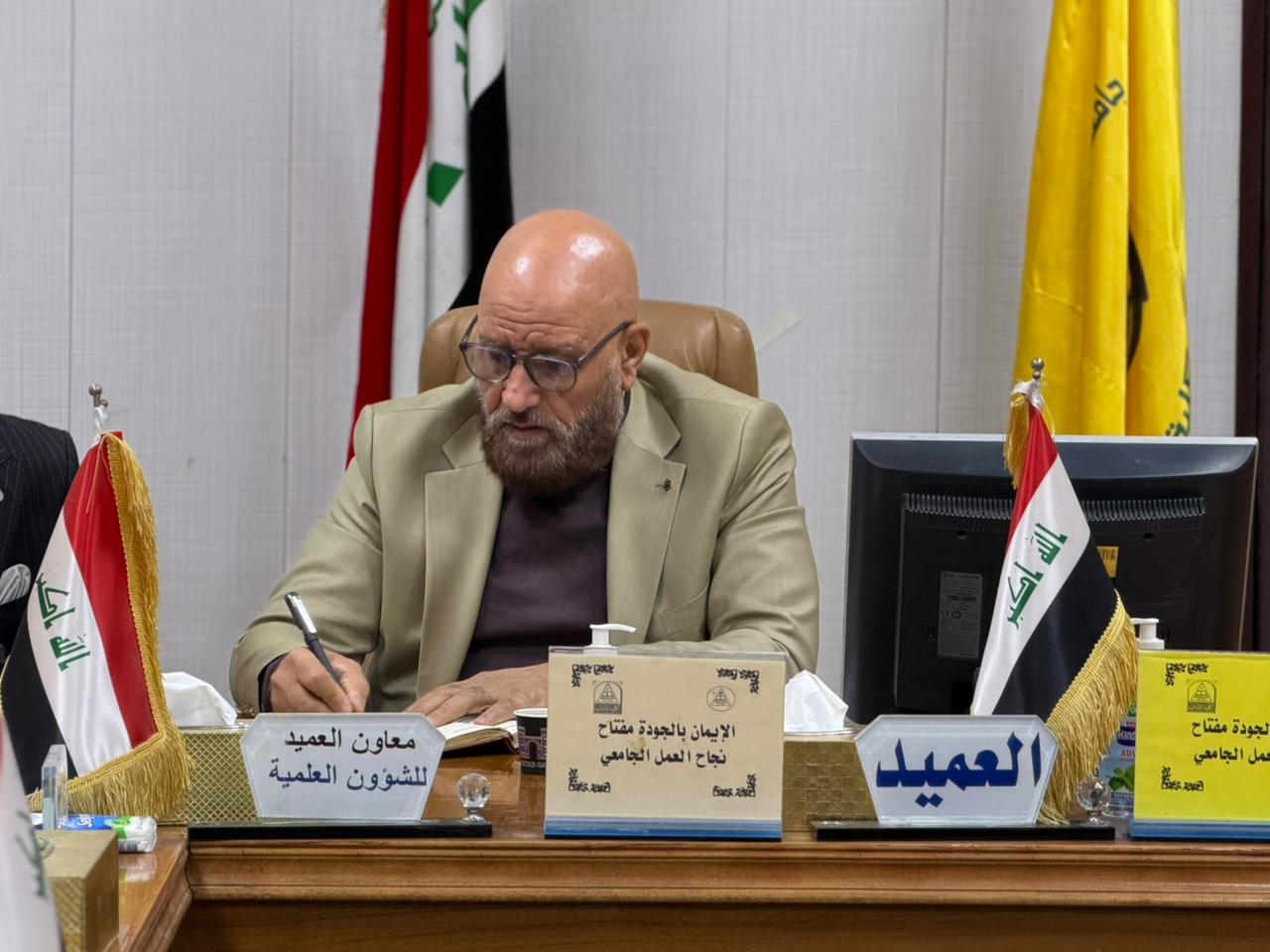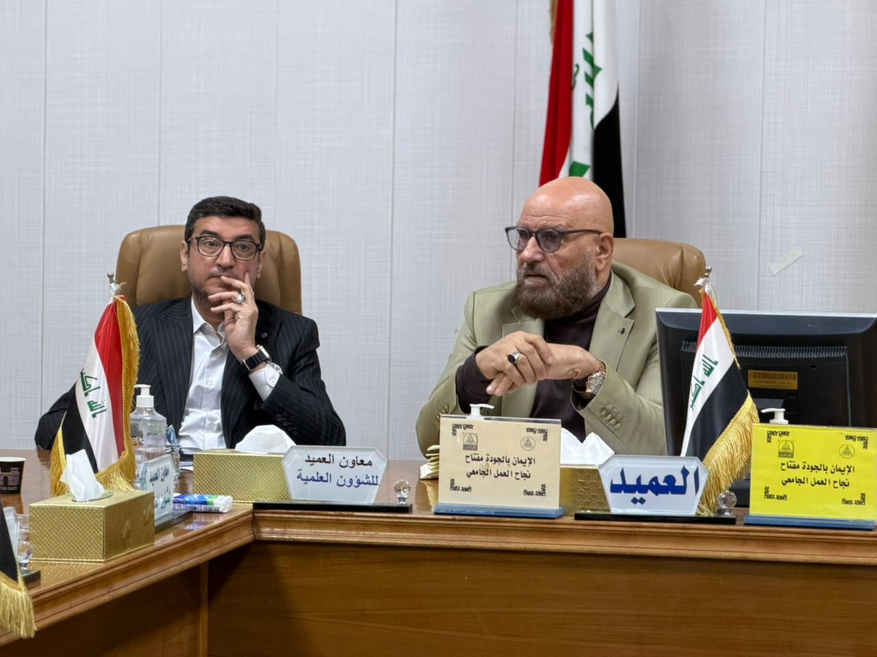 عقد اجتماع استثنائي لمجلس الكلية وبحضور السيد العميد ا.د.ماجد عبد الحميد الكعبي واعضاء مجلس الكلية اليوم الاحد الموافق ٧/ ١٢/ ٢٠٢٥ في الساعة الحادية عشرة صباحا للتداول في بعض الامور العلمية والتوجيهات مع اعضاء المجلس حيث خصص في اغلبه على مناقشة نتائج التصنيف الوطني العراقي ( للعام ٢٠٢٥) وكيفية توزيع الدرجات على استمارة توزيع الدرجات( جدول الاعتراضات حسب المؤشر ) واسفر الاجتماع عن تبني بعض التوصيات التي سترفع من شأن الأقسام في هذا التصنيف كما هو حاصل في السنوات السابقة حيث تم تاكيد التواصل مع اللجان الوزارية لغرض الإفادة من النقاط الاساسية الخاصة بتصنيف الاقسام مع ذكر نقاط القوة والضعف فيه. وختم الاجتماع بتاكيد السيد العميد على اهمية جودة العمل واستمراره في نسق يخدم العملية التعليمية والعلمية في الكلية.